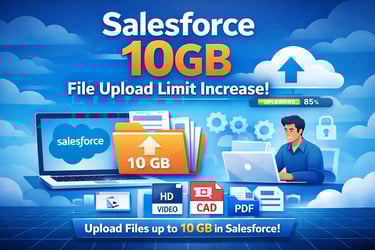 Salesforce now supports 10GB file uploads. Learn what changed, how it works, limitations, use cases, and what this means for admins and developers.